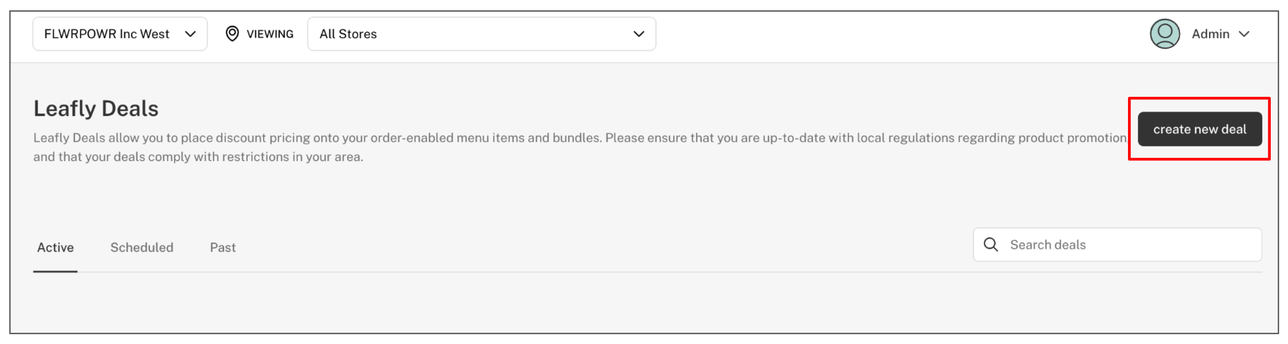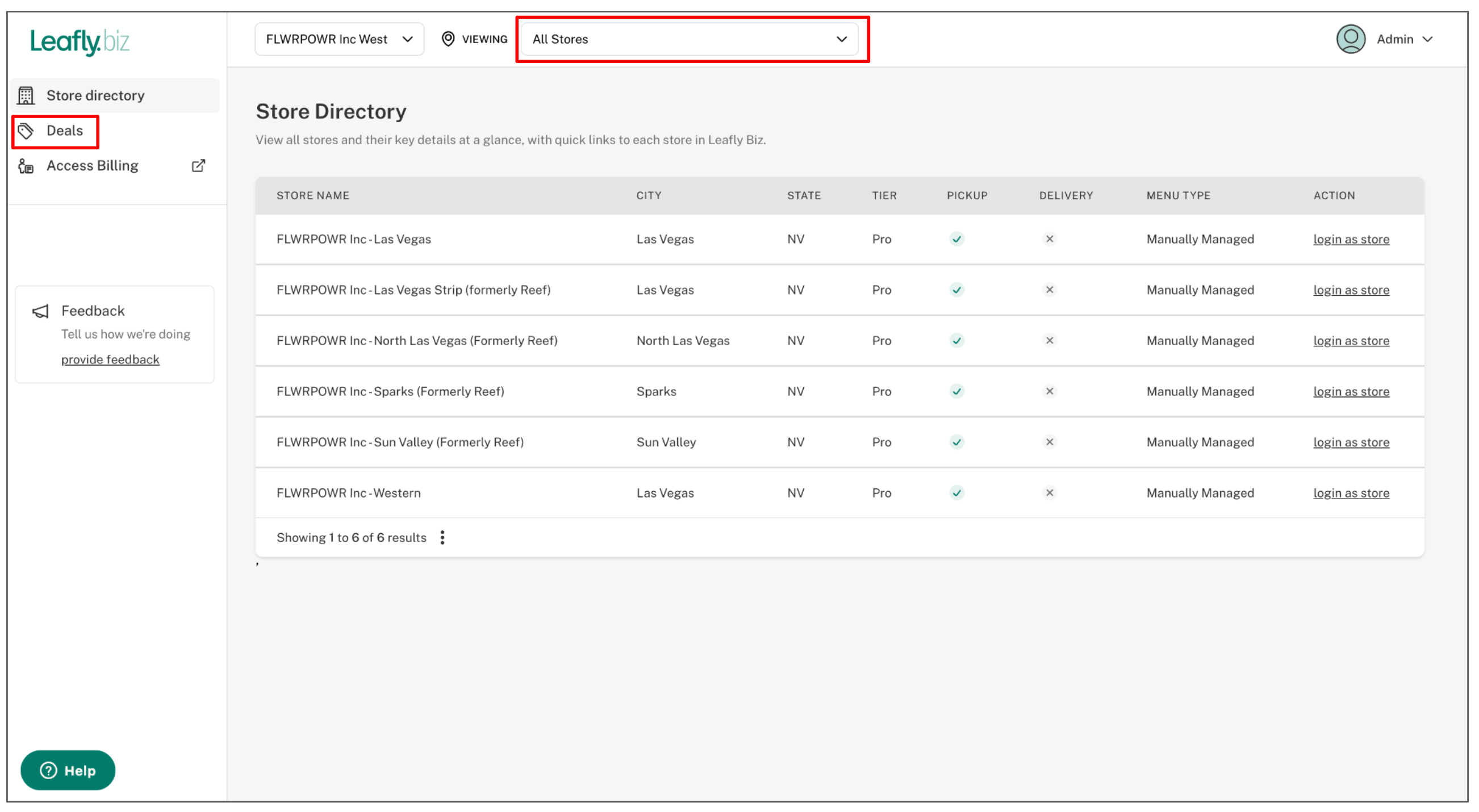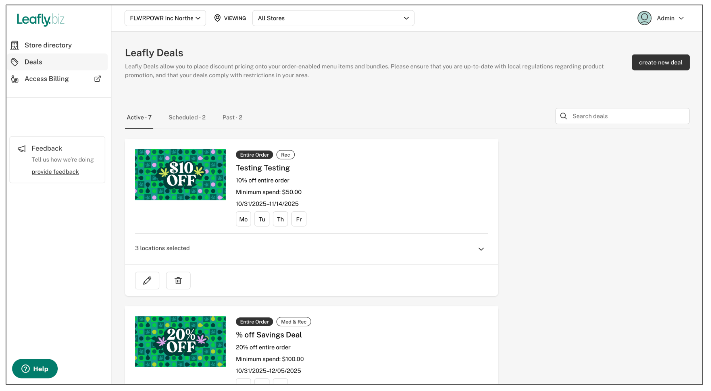 - Each included store will see the deal in its store-level Deals Dashboard, but store users cannot edit or delete it. Changes must be made from the All Stores view by an admin.