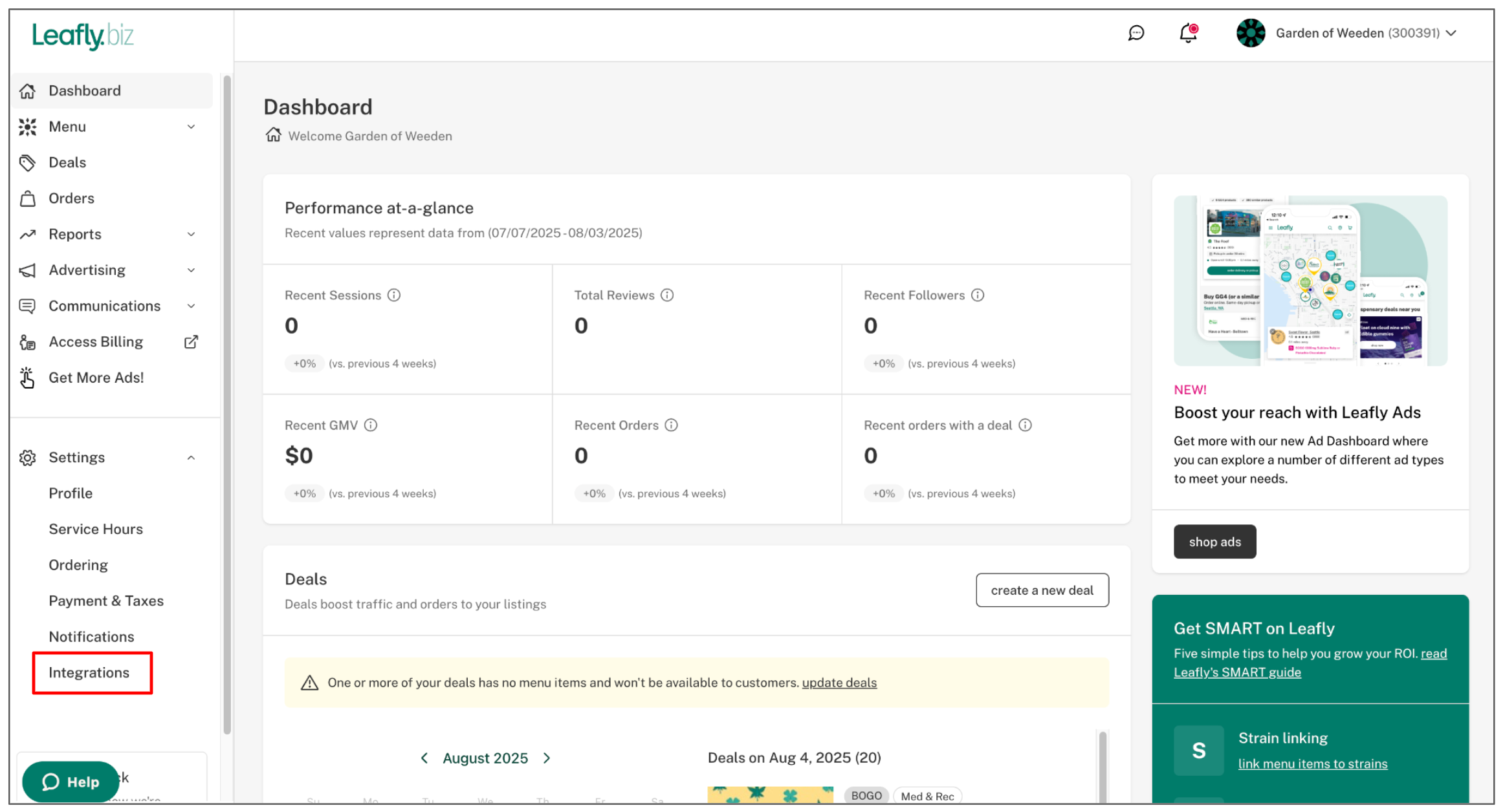 - Log in to your Leafly Biz Dashboard