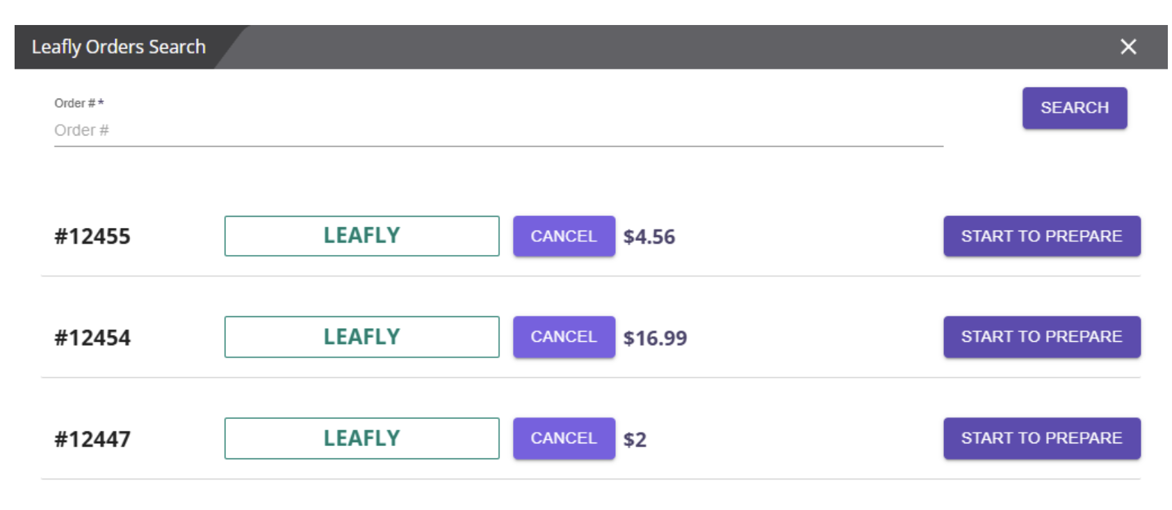 Please click the button to view Leafly orders.